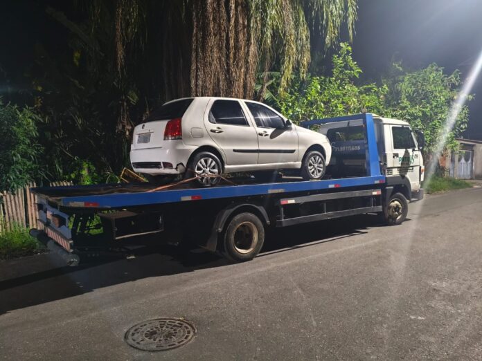 O veículo, um Fiat Palio Fire Economy, ano/modelo 2010, foi removido, e os autos de infração correspondentes às irregularidades constatadas foram lavrados.