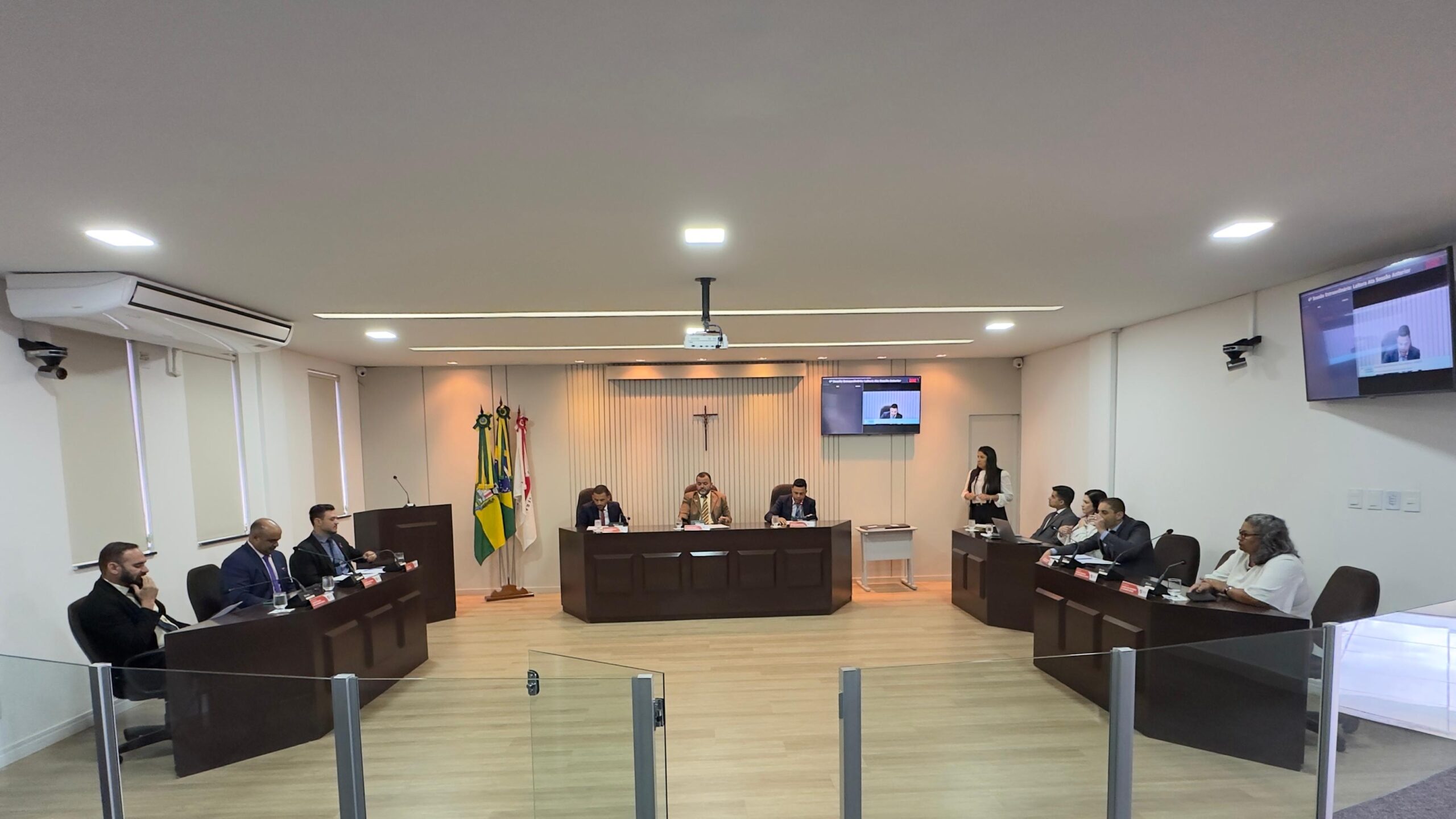 Oito vereadores participaram da reunião, que foi transmitida ao vivo pelo canal da Câmara no YouTube. O vereador Edirlei Júnior (Juninho de Edirlei) justificou sua ausência.