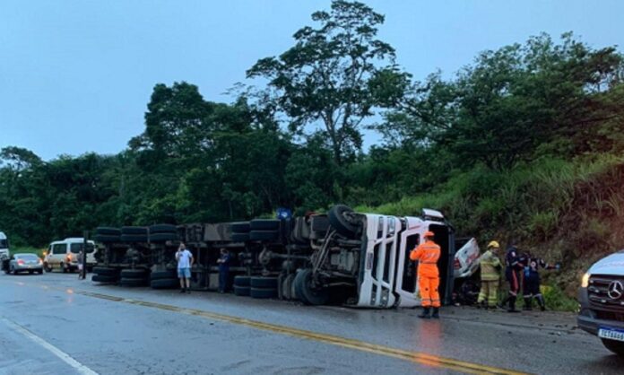 De acordo com o Corpo de Bombeiros Militar de Minas Gerais, ao chegarem ao local, os militares encontraram o caminhão tombado na contramão da via. A caminhonete ficou prensada entre um barranco e o veículo de carga, o que exigiu atenção redobrada das equipes durante o atendimento.
