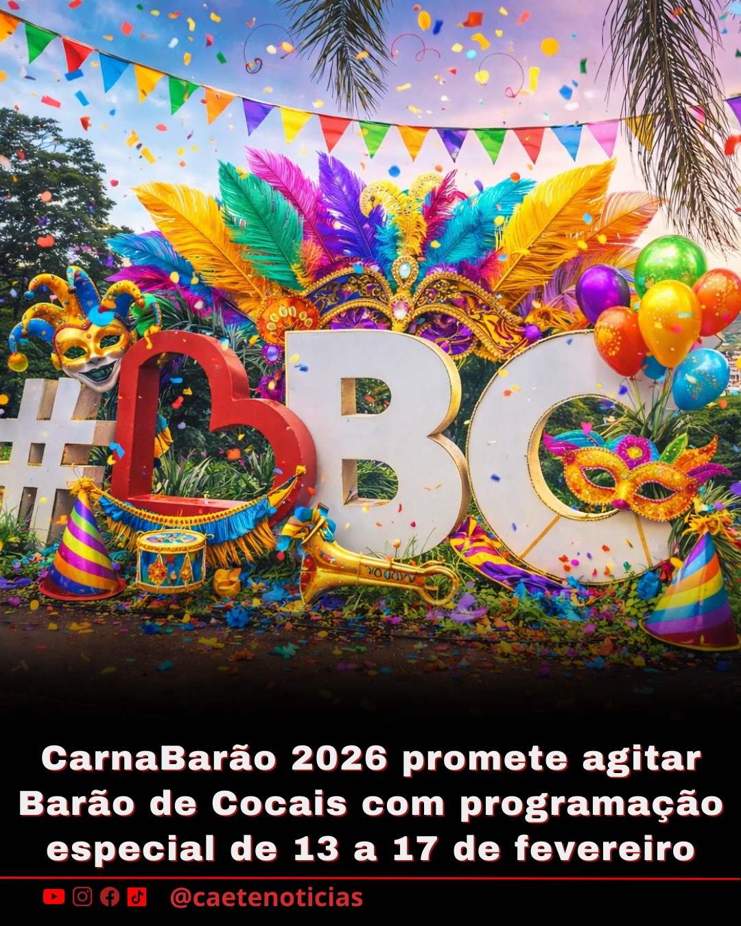 Considerado a maior festividade do Médio Piracicaba, o Carnaval de Barão de Cocais – o CarnaBarão – começa na noite desta sexta-feira, 13 de fevereiro. Até a próxima terça-feira, o evento reúne atrações nacionais e regionais, além de matinês e apresentações voltadas para toda a família. A festa é gratuita e aberta ao público, com programação no Espaço de Eventos José Furtado e na Praça Nossa Senhora Aparecida, ambos no Centro da cidade.