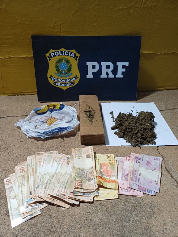 No interior do carro, os policiais visualizaram uma garrafa de vinho aberta e perceberam forte odor de maconha. Foi realizada busca minuciosa, sendo localizadas uma barra de maconha, uma porção menor da mesma substância, sementes aparentando ser da mesma espécie vegetal e aproximadamente 25 pedras de crack. Na bolsa do condutor, foi encontrada a quantia de R$ 3.462,00 em espécie. Os ocupantes não apresentaram justificativa plausível para a origem do dinheiro nem para a posse dos entorpecentes.