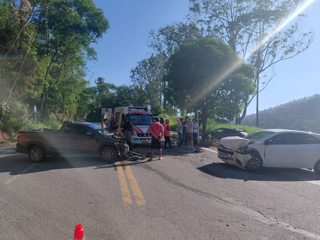 Uma colisão frontal registrada na manhã deste domingo (29) mobilizou equipes de resgate no trevo de acesso ao bairro Jacuí, na MG-123, rodovia que liga a BR-381 ao município de Rio Piracicaba.