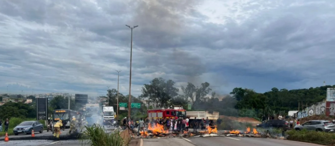 Uma manifestação na manhã desta terça-feira (10/2) bloqueia o trânsito no Anel Rodoviário de Belo Horizonte desde as primeiras horas do dia. O protesto é feito por moradores da Vila Maria na altura do bairro Betânia e do Parque Jacques Cousteau. Conforme a BHTrans, por volta de 7h, o sentido Rio de Janeiro estava totalmente bloqueado, enquanto o sentido Vitória seguia apenas pelo acostamento. “Trânsito retido em ambos os sentidos. Se possível, reprograme sua rota”, publicou a autarquia. O congestionamento no sentido Rio de Janeiro chegava a 7km. Já a lentidão no sentido Vitória era de quase 6km.