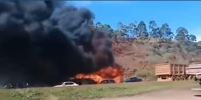 Início Brasil e Mundo Ônibus de turismo pega fogo e interdita Rodovia Fernão Dias, em Igarapé