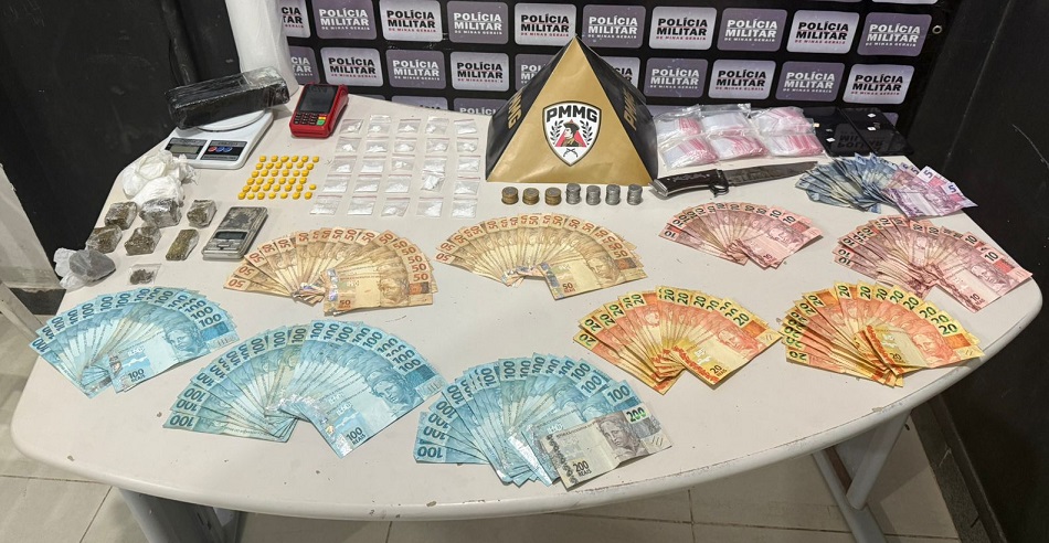 Com ele e no carro, os militares encontraram drogas, dinheiro e uma máquina de cartão. Na casa do suspeito, os policiais localizaram mais entorpecentes, balanças de precisão e materiais usados para fracionar as drogas. Ao todo, foram apreendidas uma barra, sete tabletes e uma bucha de maconha,25 papelotes e porções de cocaína, 38 comprimidos semelhantes a ecstasy, R$ 8.039,60 em dinheiro, além de dois celulares e um veículo. O casal foi preso e encaminhado à Delegacia de Polícia Civil.