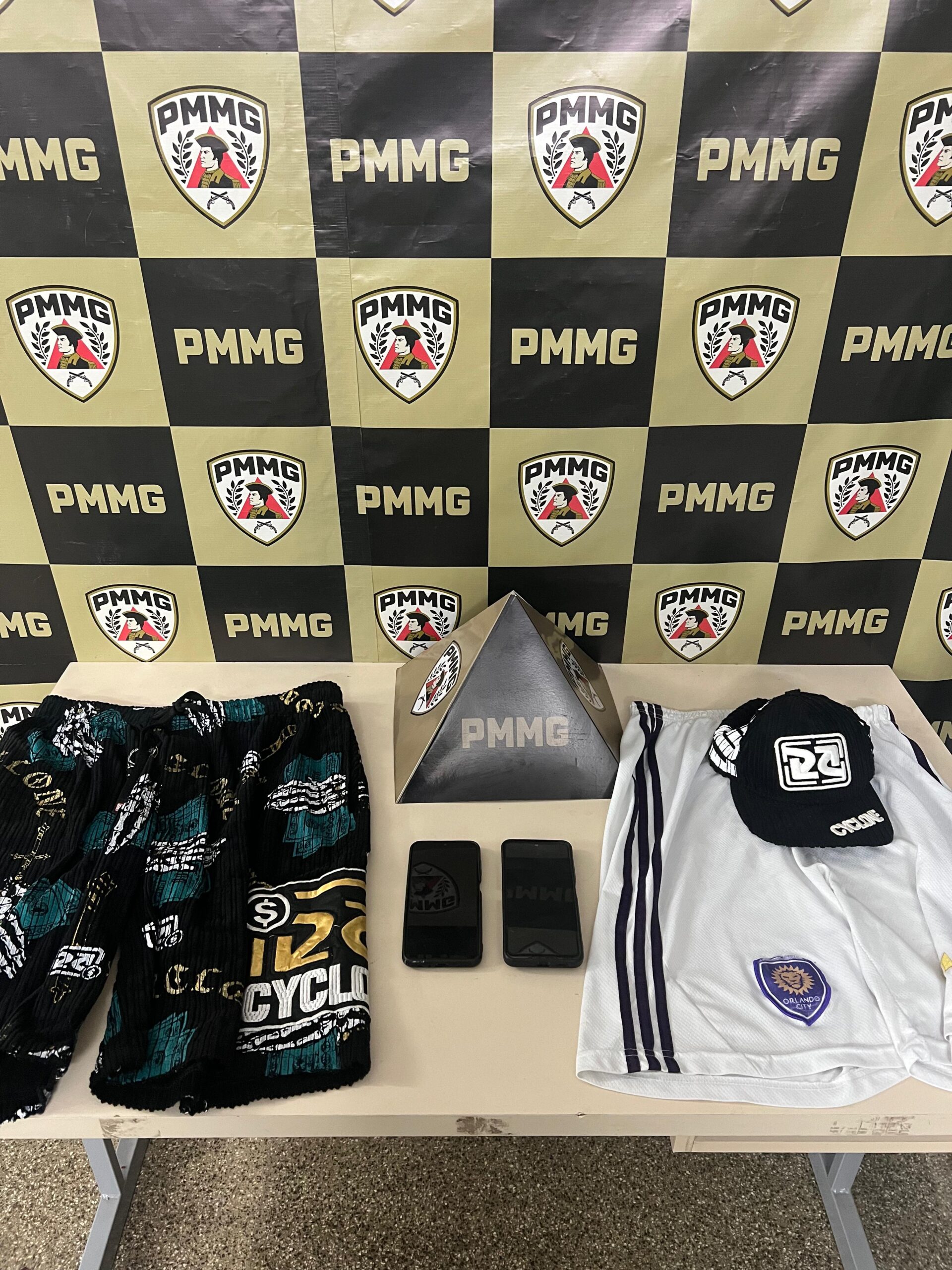 Entre os materiais apreendidos estão um celular e as vestimentas usadas na ação.