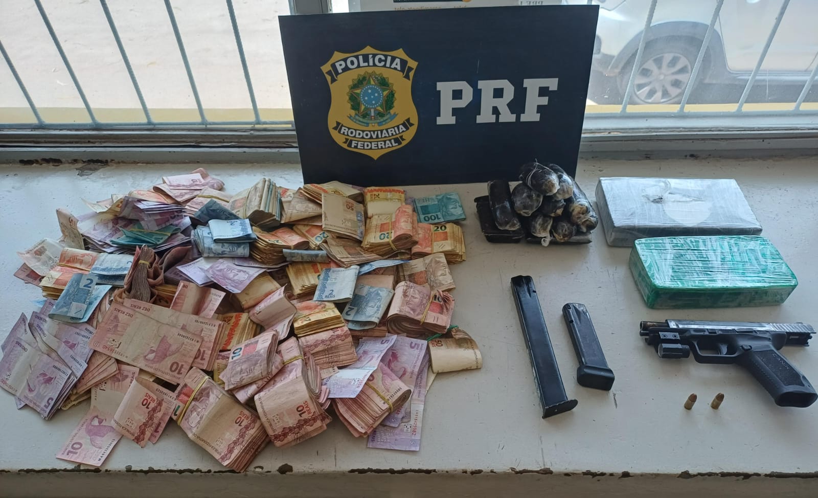 De forma espontânea, o condutor declarou que teria sido contratado para buscar o dinheiro no Rio de Janeiro, alegando desconhecer a presença das drogas e da arma no veículo.