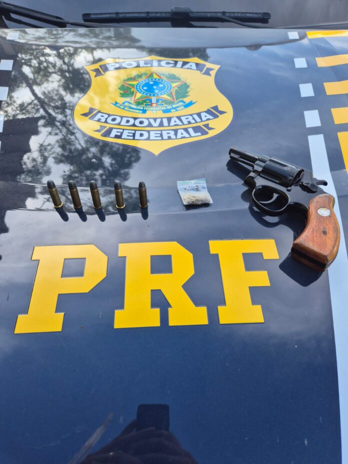 A Polícia Rodoviária Federal (PRF) prendeu dois homens e apreendeu um revólver calibre .38 municiado durante fiscalização realizada na tarde de domingo (22), no km 121 da BR-262, em Rio Casca.