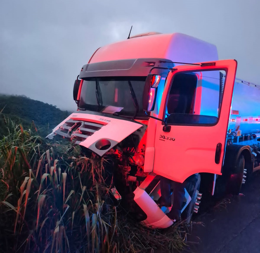 A colisão envolveu um caminhão-tanque e um carro de passeio, modelo Jeep Compass.